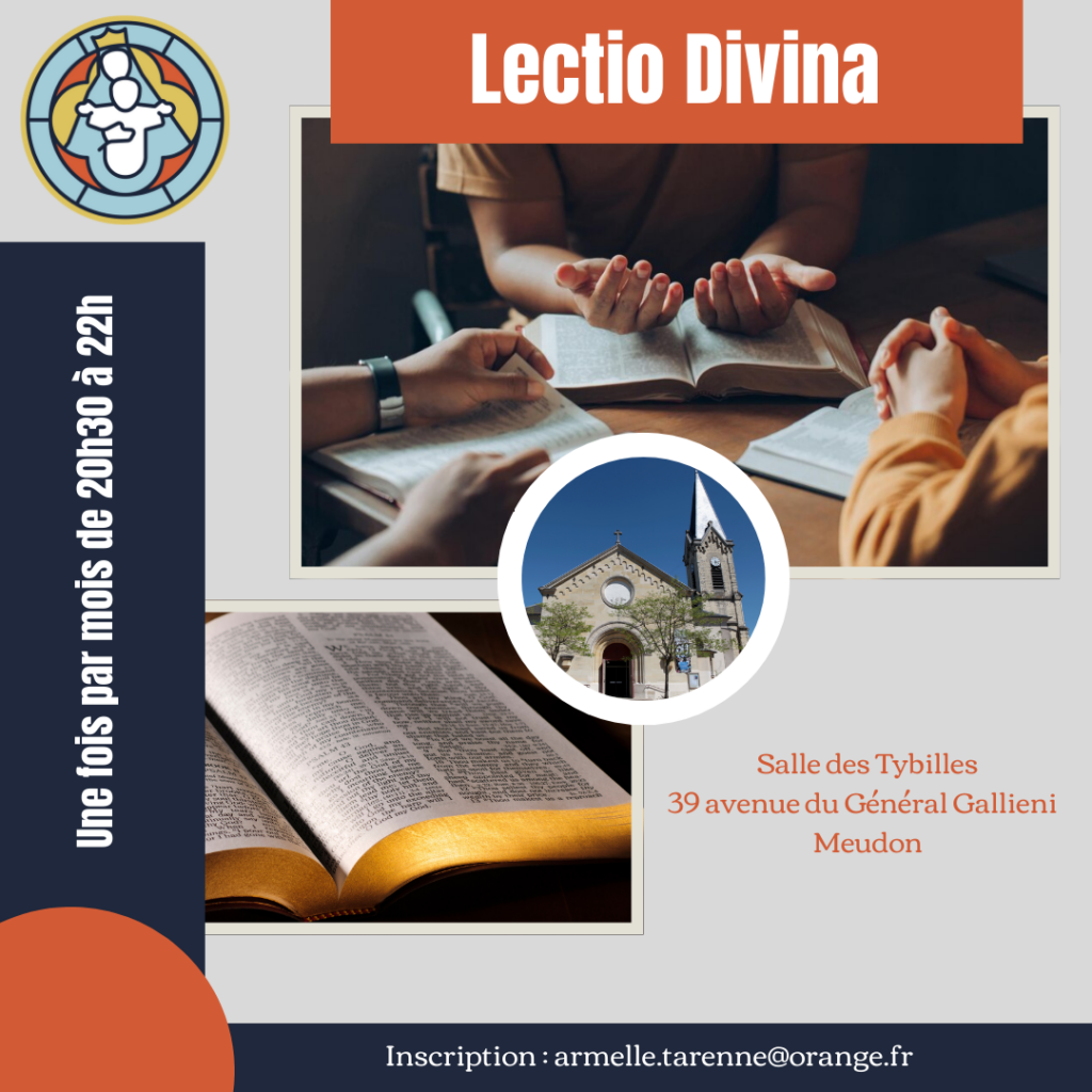 Partant d’une lecture des Saintes Écritures, un cheminement nous conduit à entendre ce que le Seigneur veut nous dire aujourd’hui. Dans une communion d’esprit, nous découvrons comment cette Parole nous parle individuellement, mais aussi comment elle parle aux autres. Cette pratique est accessible à tous. Par l’écoute et le partage sur les textes bibliques, nous sommes rejoints par Dieu dans toutes les dimensions de notre être. La Lectio Divina nous aide à Le rencontrer en profondeur afin d’engager avec Lui toute notre vie. Des paroissiens se réunissent en présentiel (Tybilles) ou en visio, une fois par mois de 20h30 à 21h30, pour partager ensemble sur la Parole de Dieu, à la manière de la Lectio Divina.