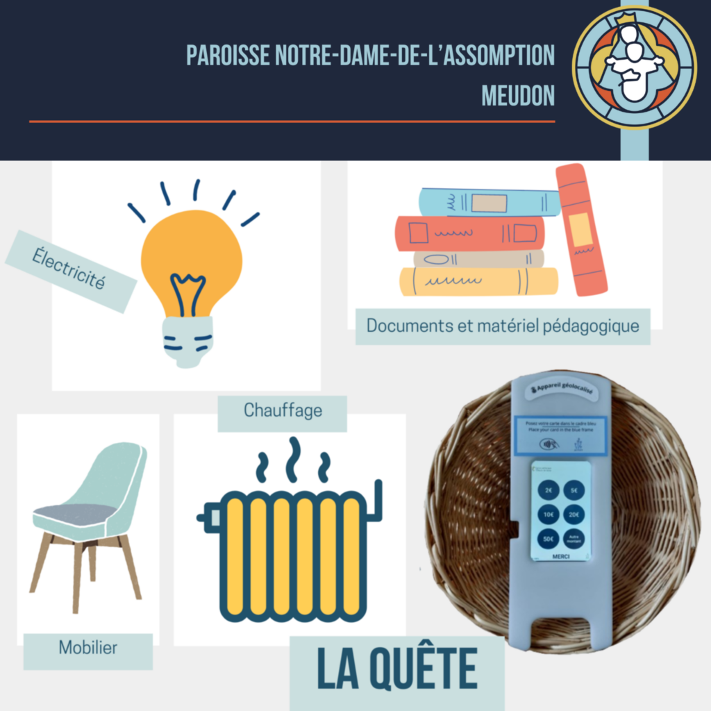 La quête est une ressource vitale pour votre paroisse : elle sert à couvrir les frais de fonctionnement comme le chauffage, l’électricité ou les différentes activités pastorales.